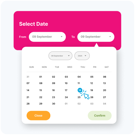 Manage courses, dates, and participants in one clear dashboard — past or fully booked events are hidden automatically.
